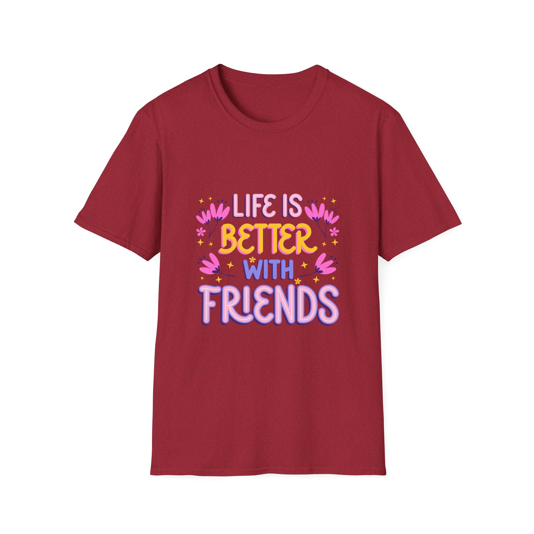 T-Shirt — “Life Is Better With Friends” Floral Graphic